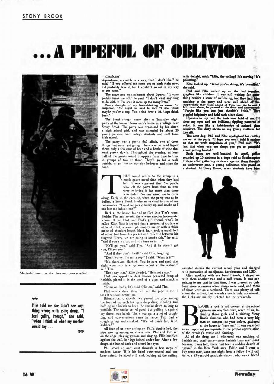 Dated Saturday 10 June 1967, it was just one of four related articles in that issue professing to "examine why marijuana use is rising among students in Long Island colleges and high schools" under the general strapline "Pot and the Good Kids".